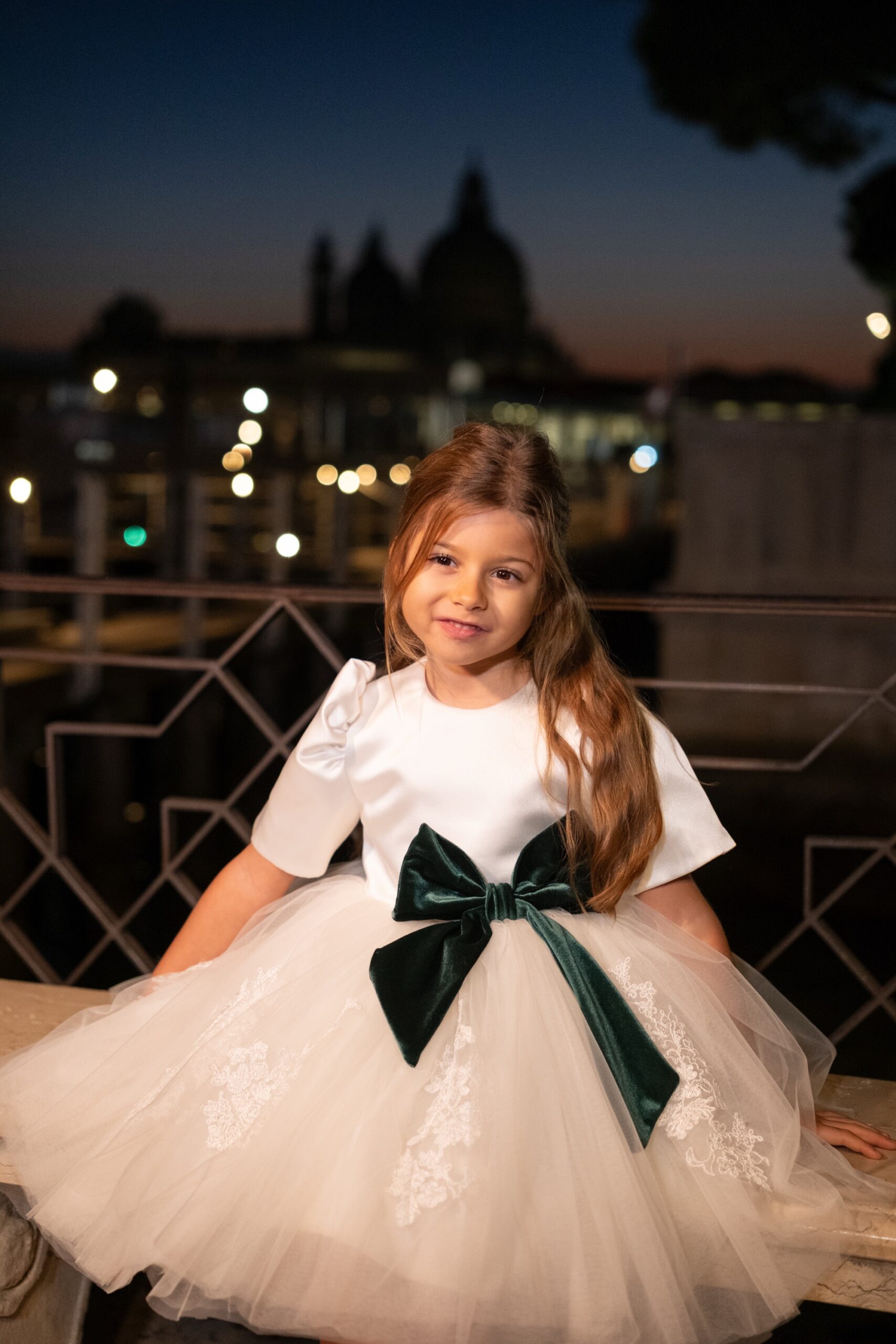 Abito bimba in tulle con fiocco in seta