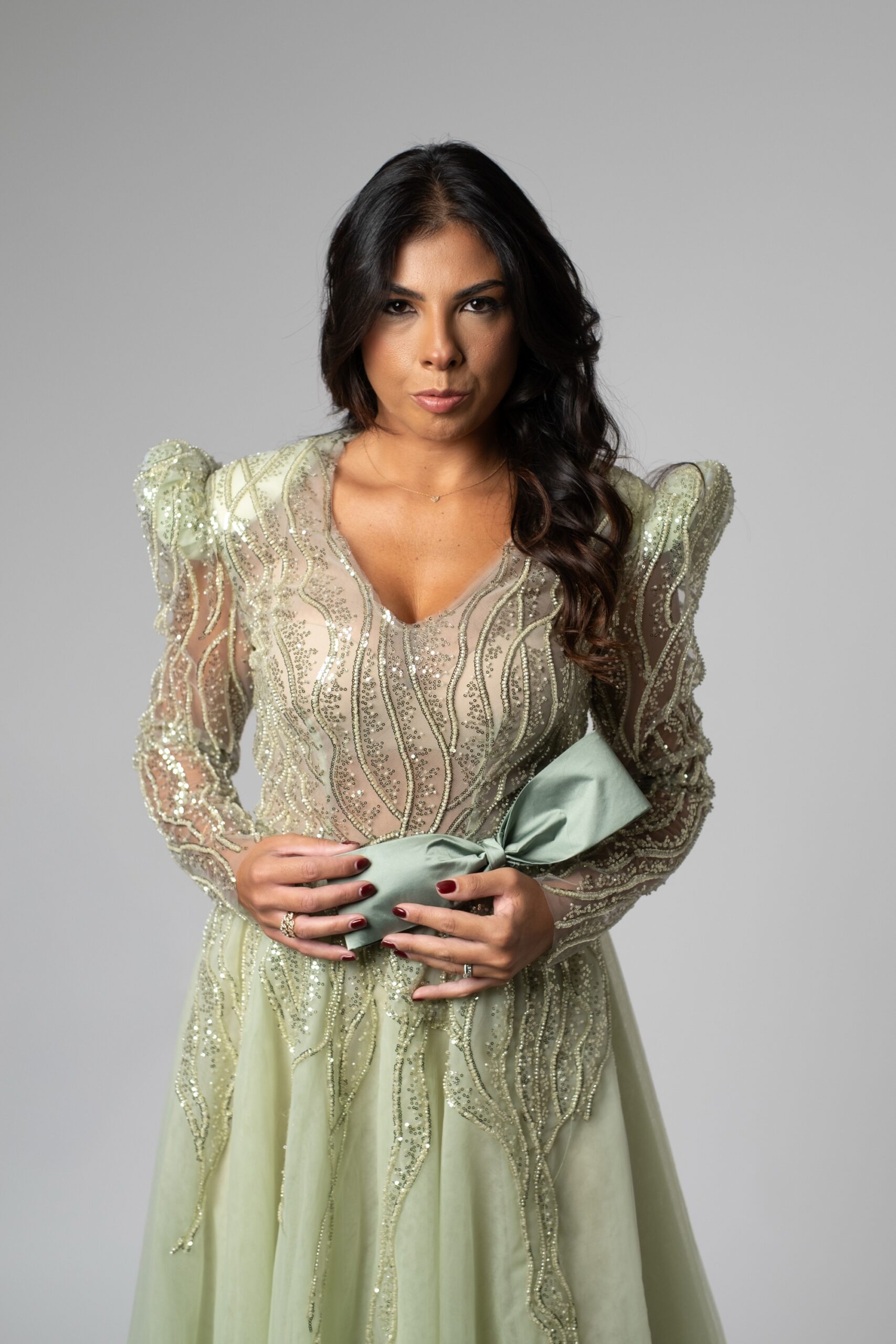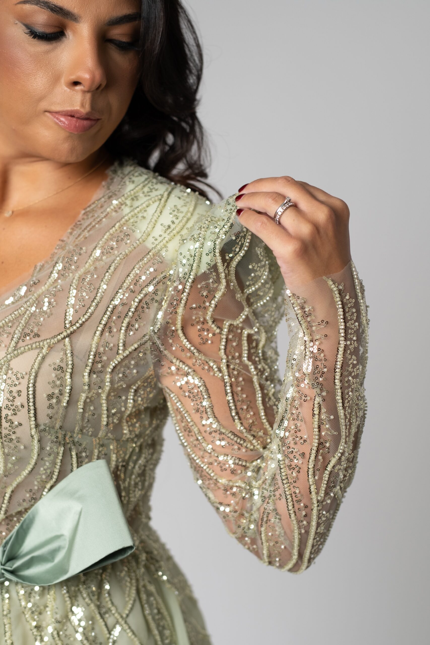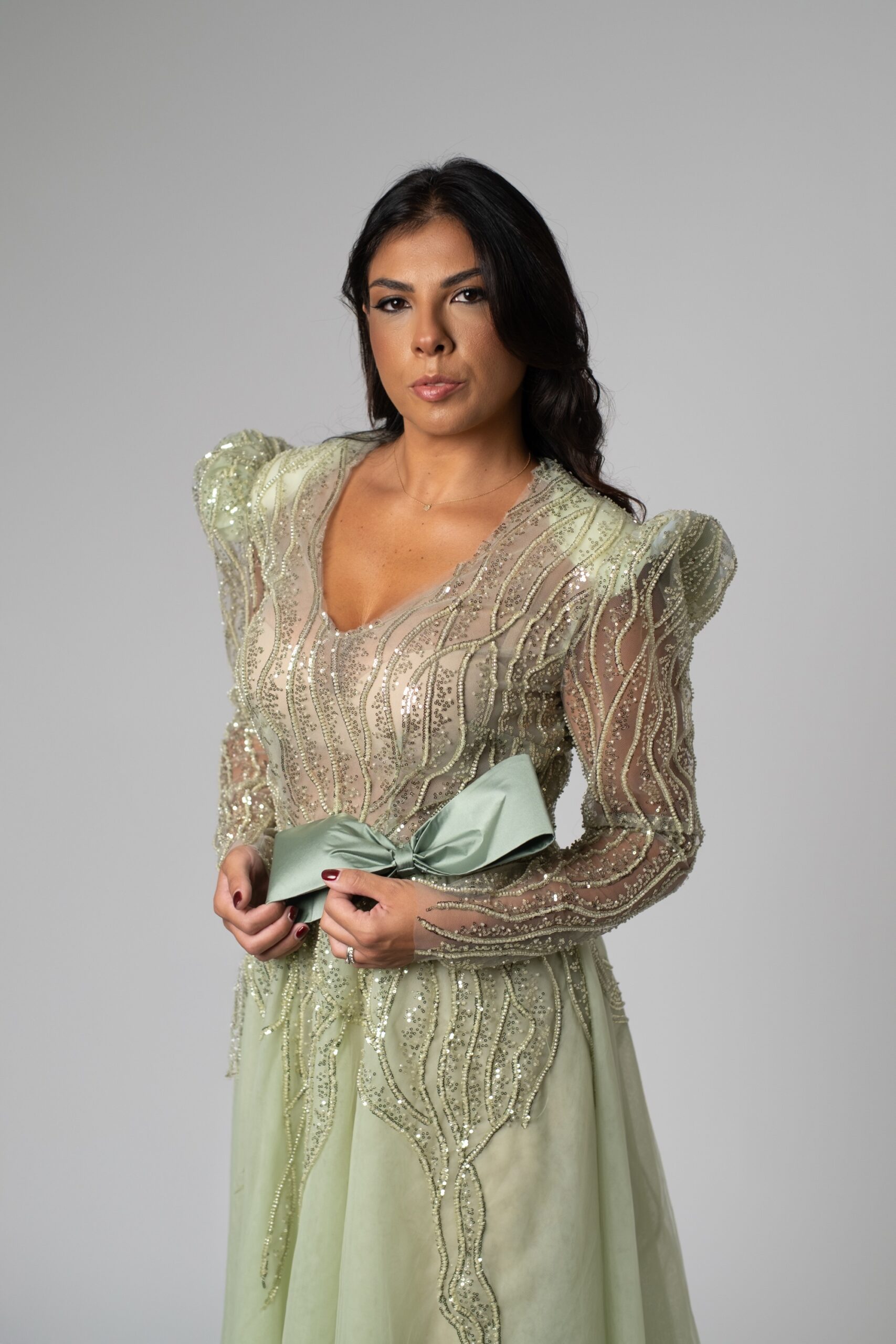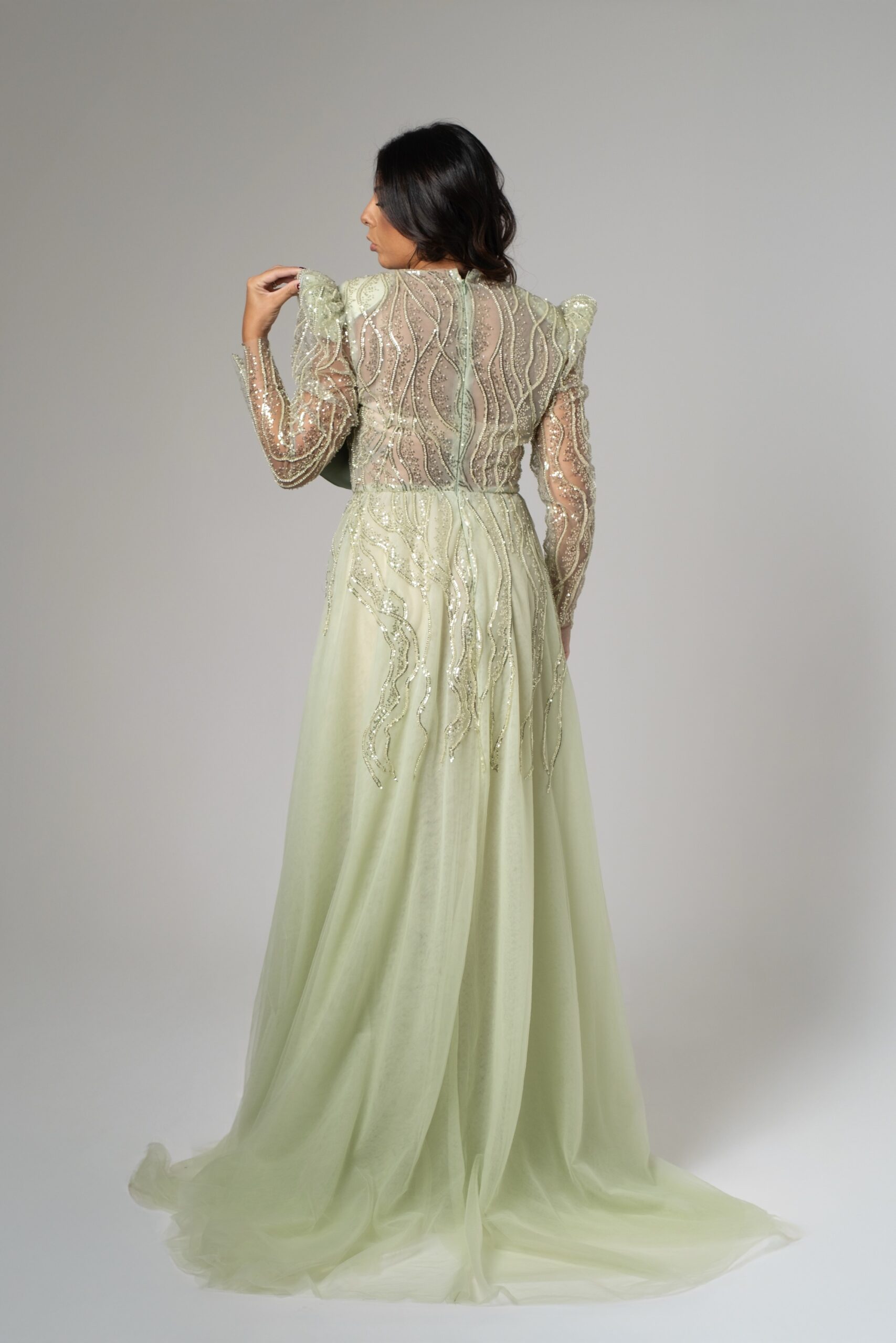 Abito donna ricamato in salvia