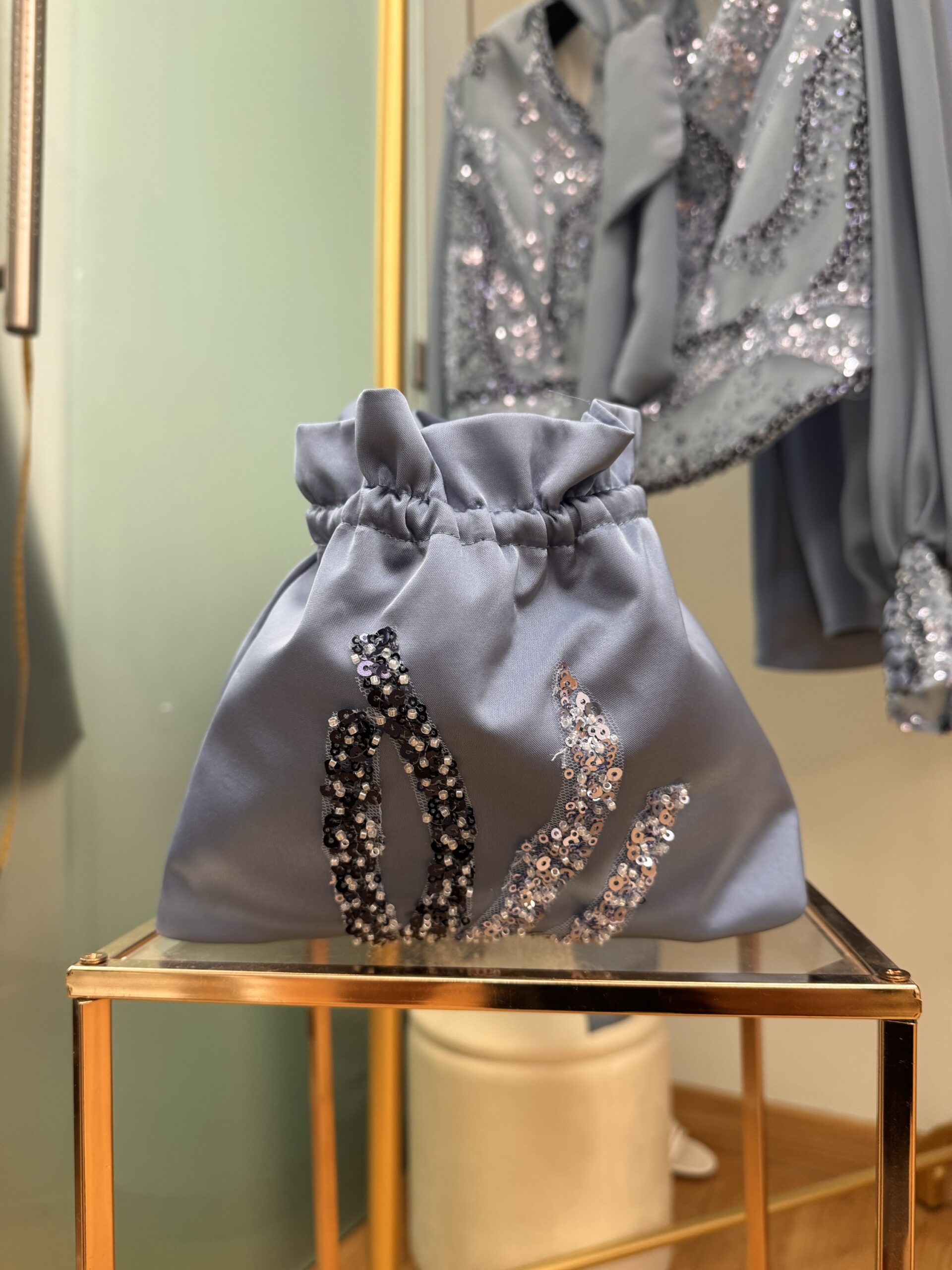 Borsa in seta con dettaglio decoro polvere