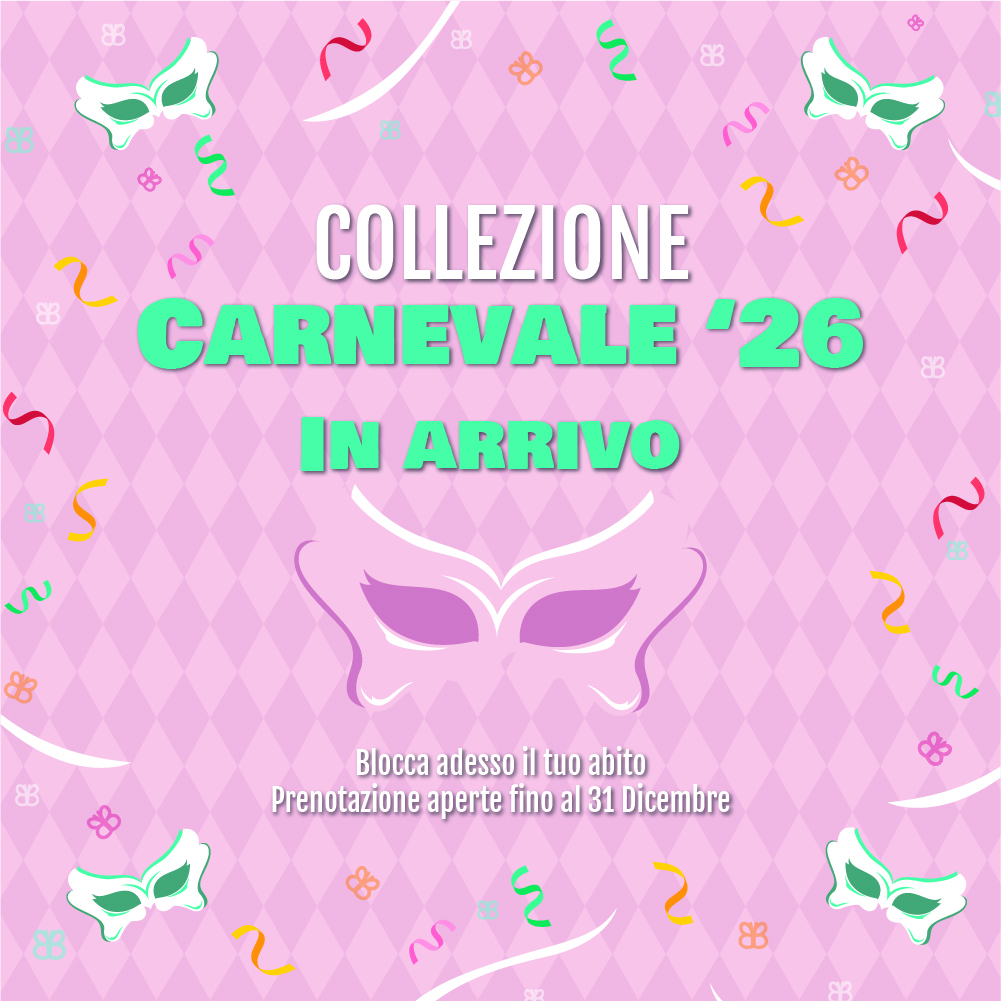 Versando la caparra, ti assicuri un posto privilegiato e l’accesso ai modelli della nostra Nuova Collezione Carnevale 2026.