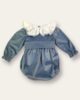 Pagliacetto in velluto polvere con collo bianco e pizzo